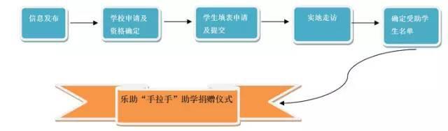 为了保障捐助活动顺利、有序的进行,乐助“手拉手贫困助学”农民工子女教育关怀活动依照如下流程图进行。